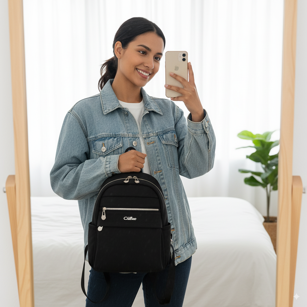 ⭐⭐⭐⭐⭐ “Me siento más organizada y ligera con esta mochila.” – Natalia C